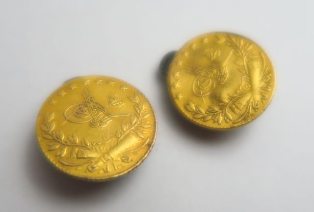 2 pièces étrangères en or, transformées en clips d'oreilles