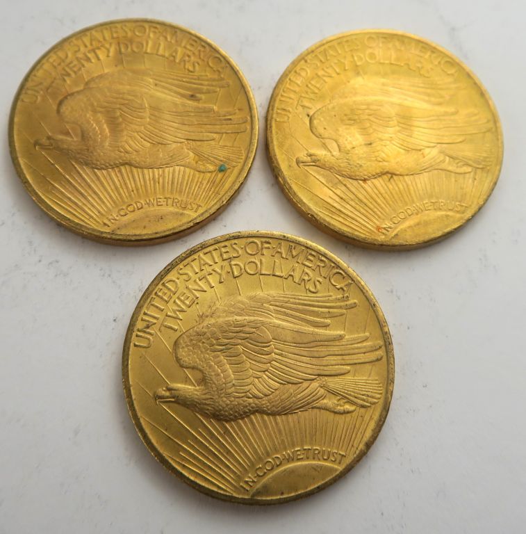 3 pièces de 20 dollars or 1924. Frais acheteur 20 % TTC