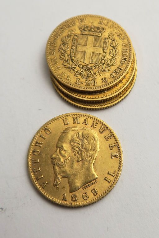 4 pièces de 20 Lires or. Frais acheteur 5 % TTC