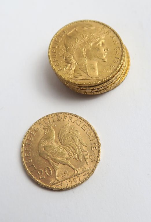 7 pièces 20 francs or. Frais acheteur 20 % TTC