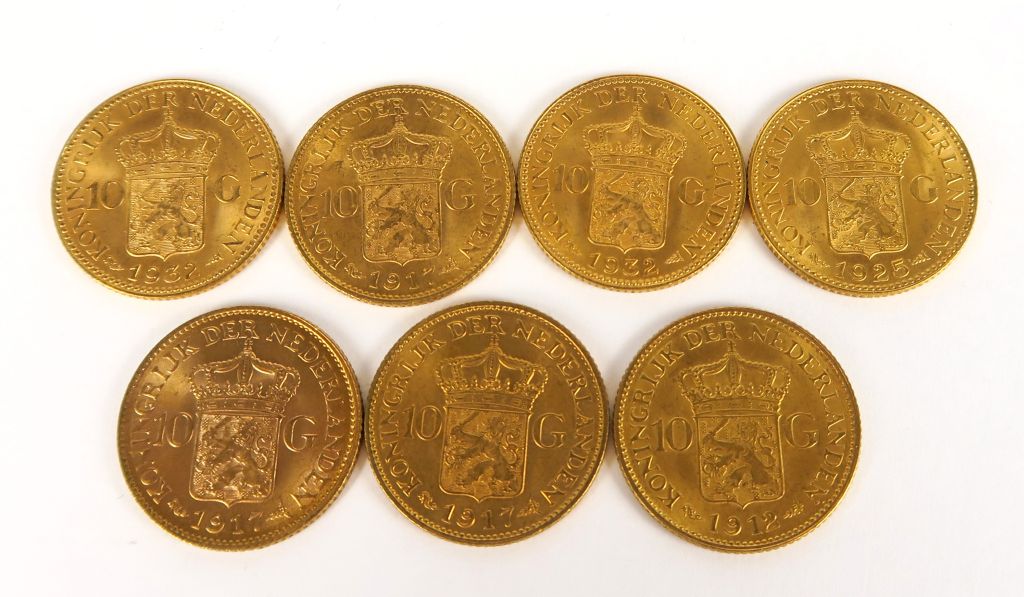 7 pièces de 10 florins hollandais or FRAIS ACHETEUR : 5 % TTC