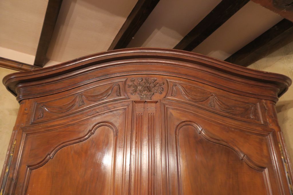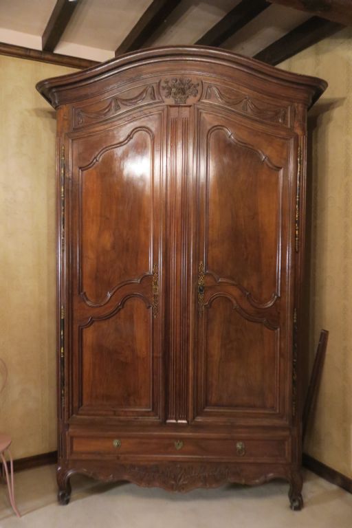 Armoire de style Louis XV en noyer ouvrant à deux grandes portes et un grand tiroir. Dim. 279 x 63 x 156 cm.