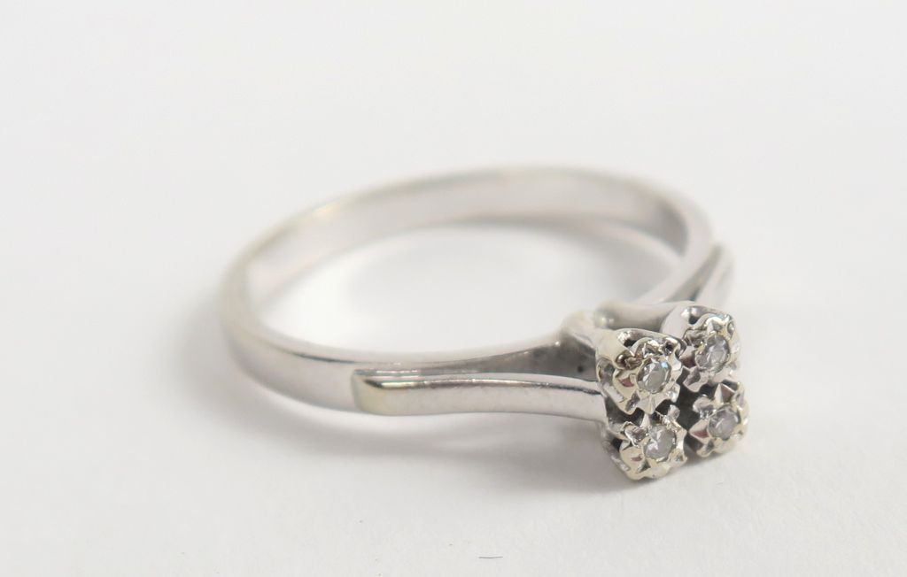 Bague en or blanc, ornée de 4 éclats de diamants. Poids tel : 2,7 g