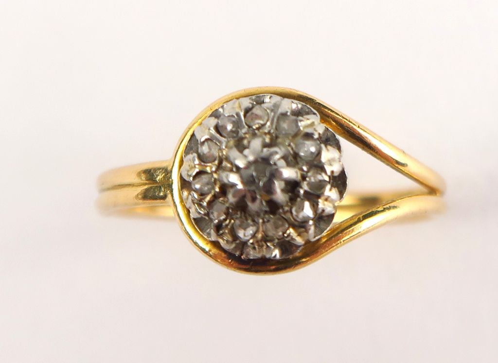 Bague en or deux tons, ornée de diamants taillés en rose. Poids tel : 3,22 g