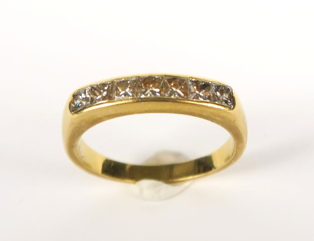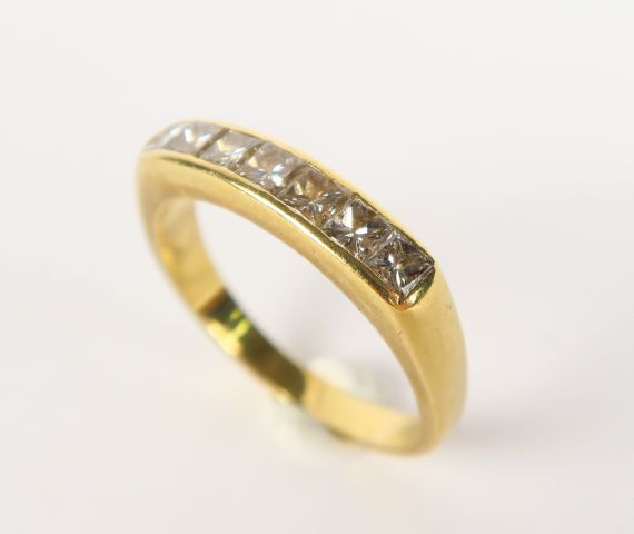 Bague en or jaune sertie de brillants calibrés. Poids tel : 5,6 g. TDD 59