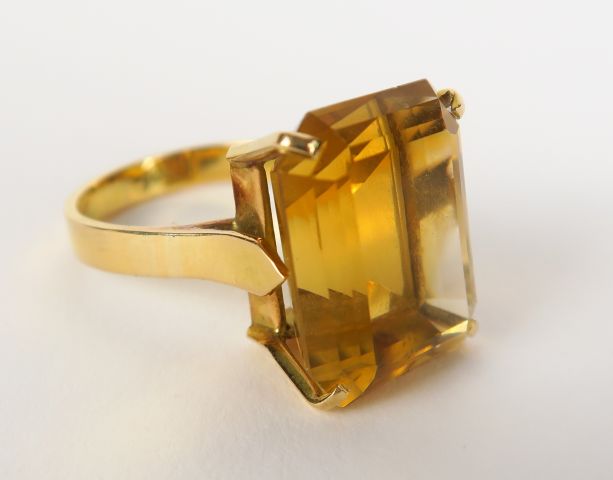 Bague ornée d'une topaze. Monture en or. Poids : 9,18 g. TDD 59