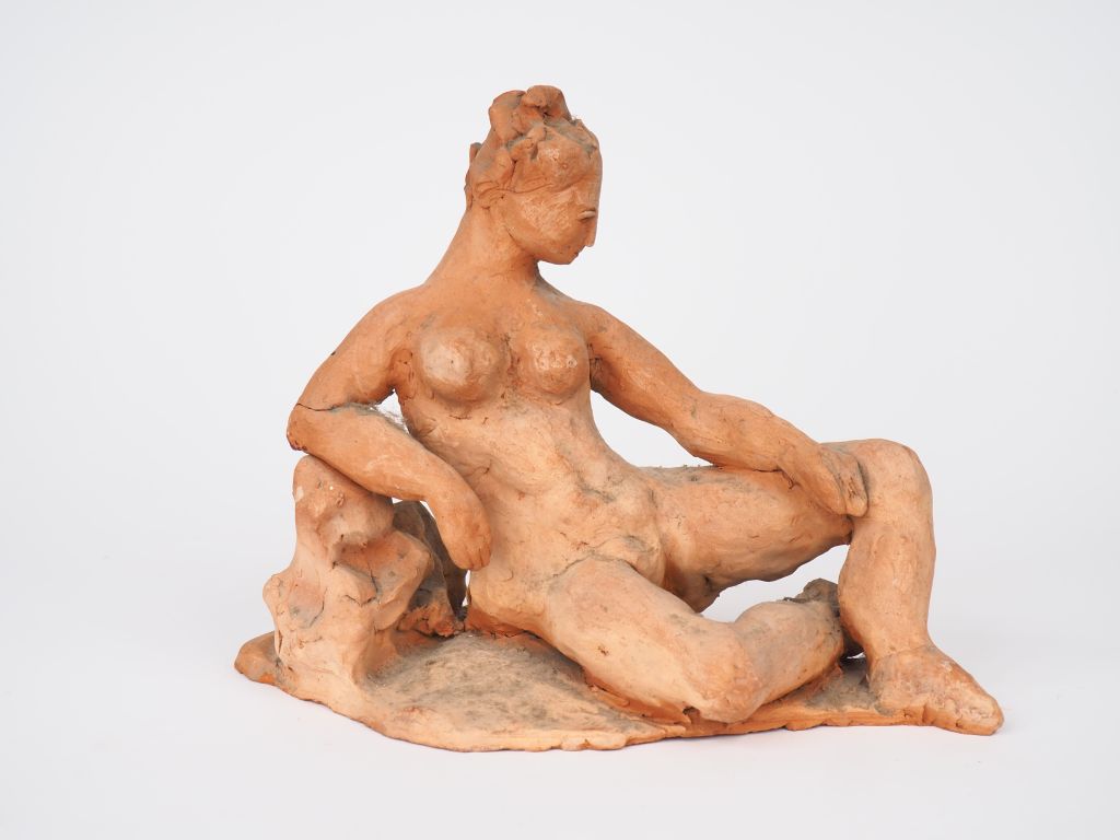 Balbino GINER. "Femme nue assise" Sculpture en terre cuite Signée et datée 48. Dim. 24 x 30 cm