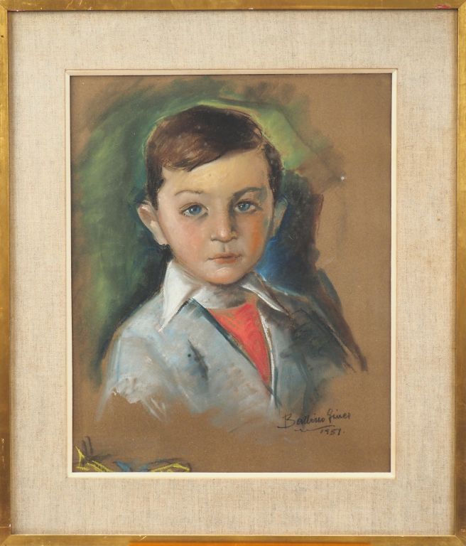 Balbino GINER. "Portrait de jeune garçon". Pastel, signé en bas à droite et daté 51 Dim. 51,5 x 41,5 cm