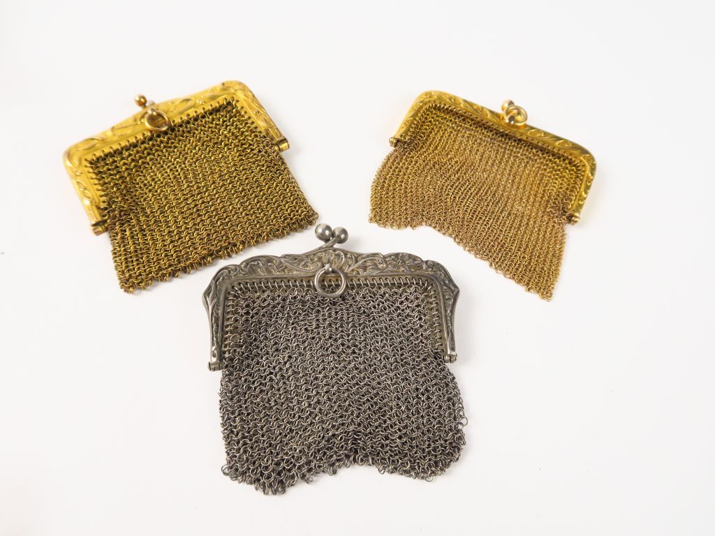 Bourse en argent (60 g), et deux bourses en métal doré.