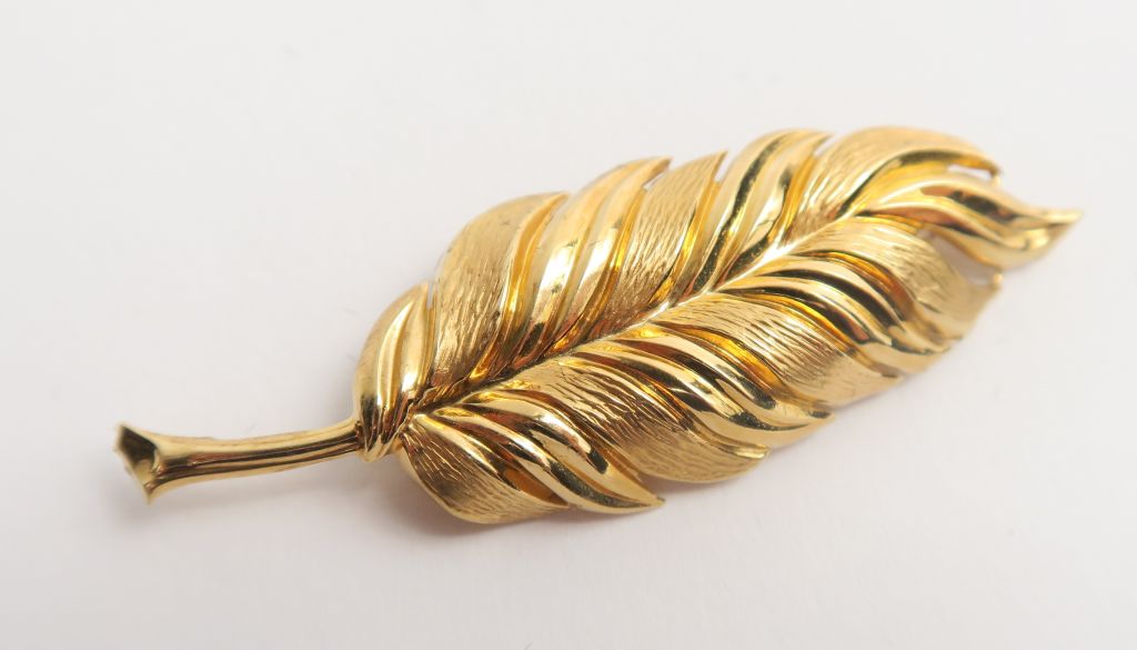 Broche en or en forme de plume. Poids : 3 g