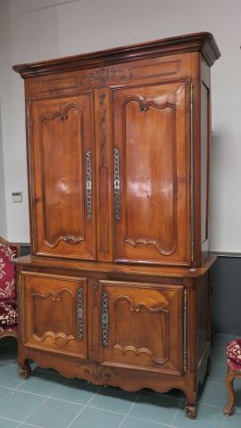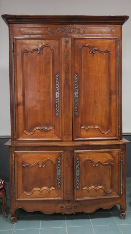 Buffet deux corps fin XVIII ème - début XIX ème de style Louis XV en merisier mouluré et sculpté, à décor de fleurs.