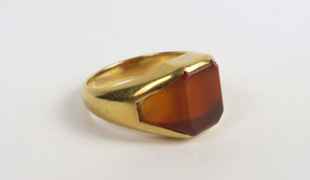 Chevalière en or ornée d'une agate. Poids tel : 8,6 g