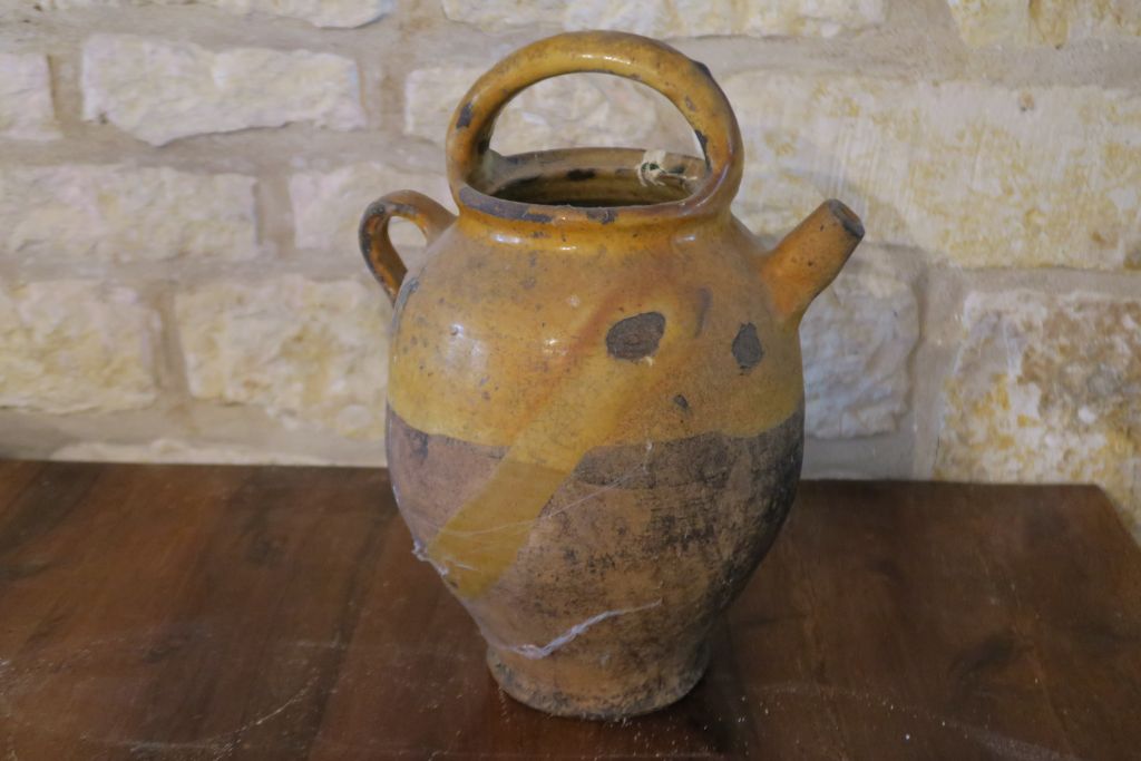 Lot de Chevrette en terre vernissée jaune. (petits sauts d'émail) H. 34 cm. au prix de 15 à 20 € en vente aux enchères par l'hôtel des ventes Primardeco