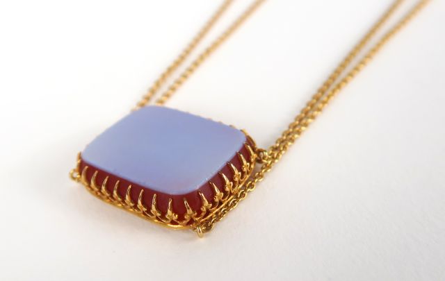 Collier à double chaine en or soutenant une plaque en agate. Poids tel : 11,2 g