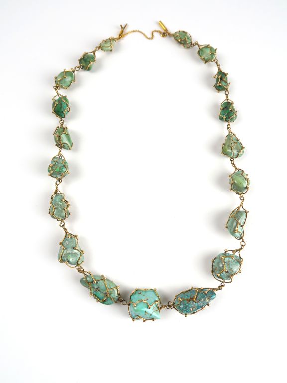 Collier en or, soutenant 19 turquoises brutes. Poids tel : 91 g