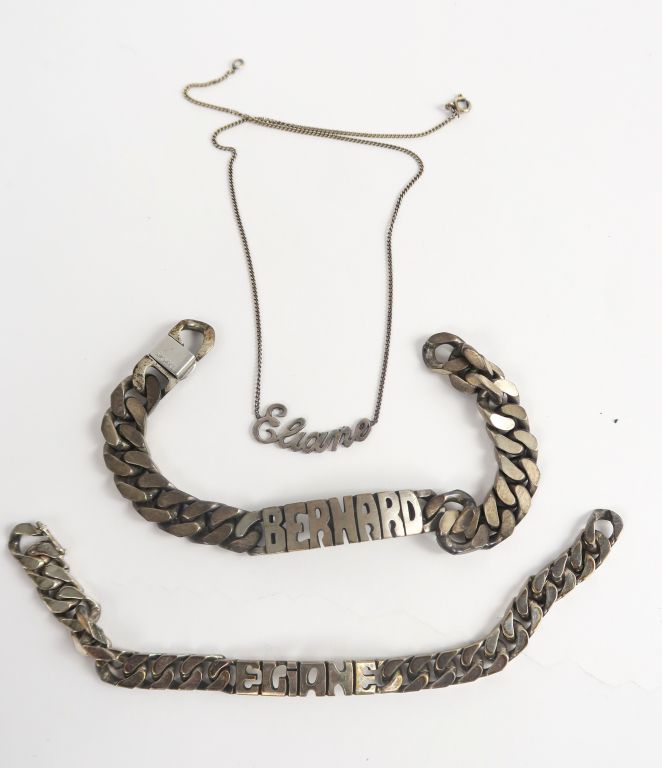 Deux gourmettes et un collier 'Eliane', l'ensemble en argent. Poids : 108 g