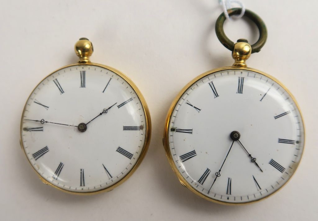 Deux montres de col en or. Poids tel : 55.9 g (manque la bélière pour une, l’autre en métal)