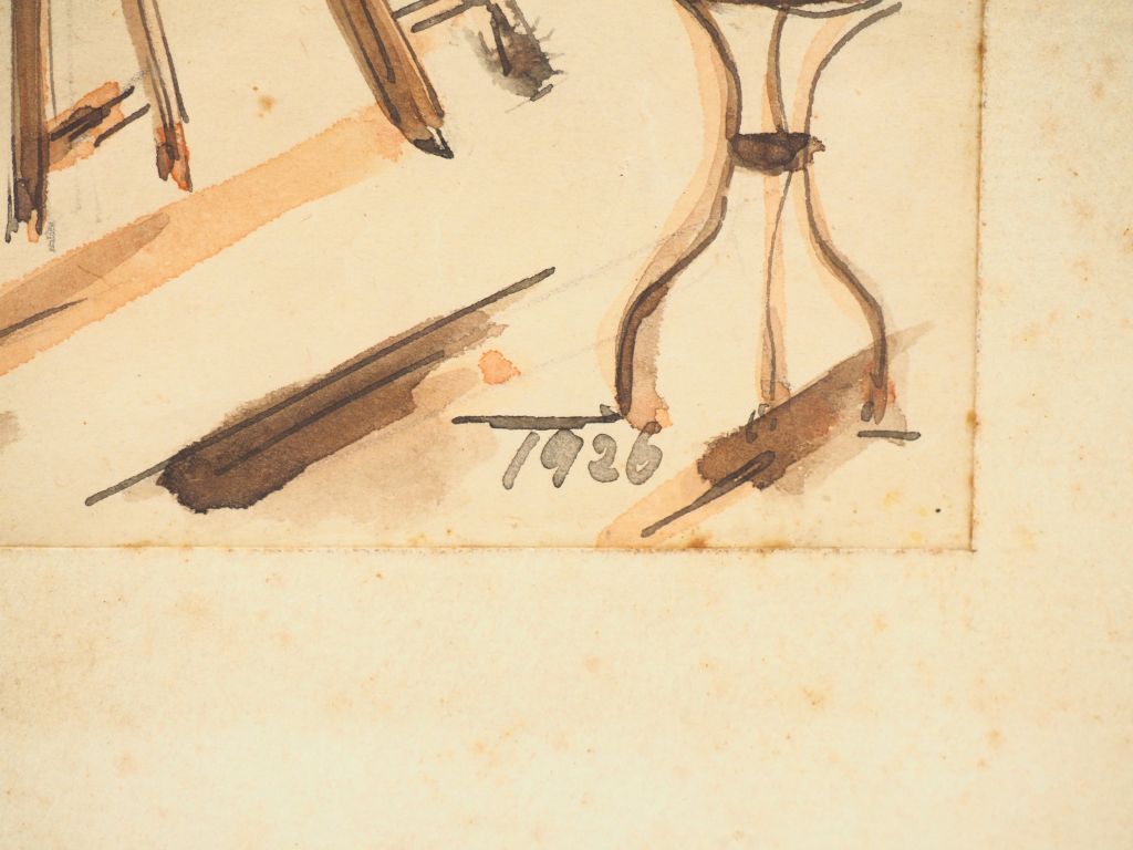 Ecole française XXème. "Le bal en plein air". Lavis, daté en bas à droite 1926 Dim. 19,5 x 26 cm