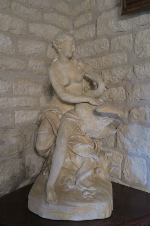 Ecole française XXème. "Léda et le cygne" Moulage en plâtre patiné. Dim. 80 x 37 x 45 cm. (restaurations et égrenures)