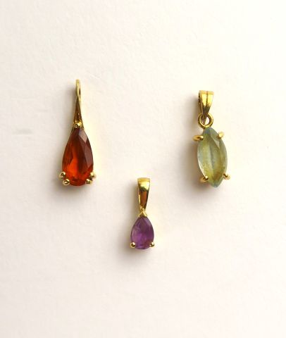 Ensemble de trois breloques ornée de pierres de couleurs, montures en or. Poids tel : 2,52 g