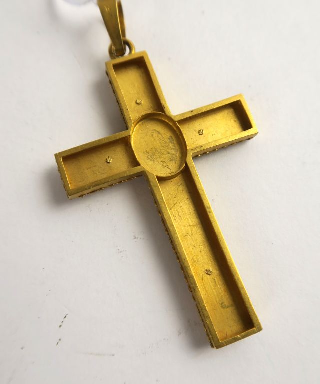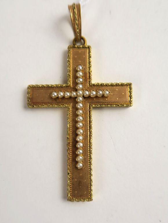 Grande croix en or, ornée de petites perles. Poids tel : 6,5 g