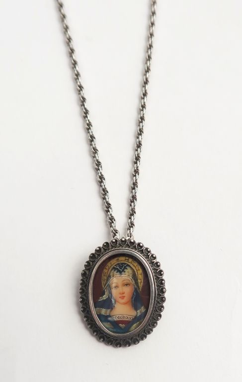 Médaillon orné d'une miniature, avec sa chaine en argent