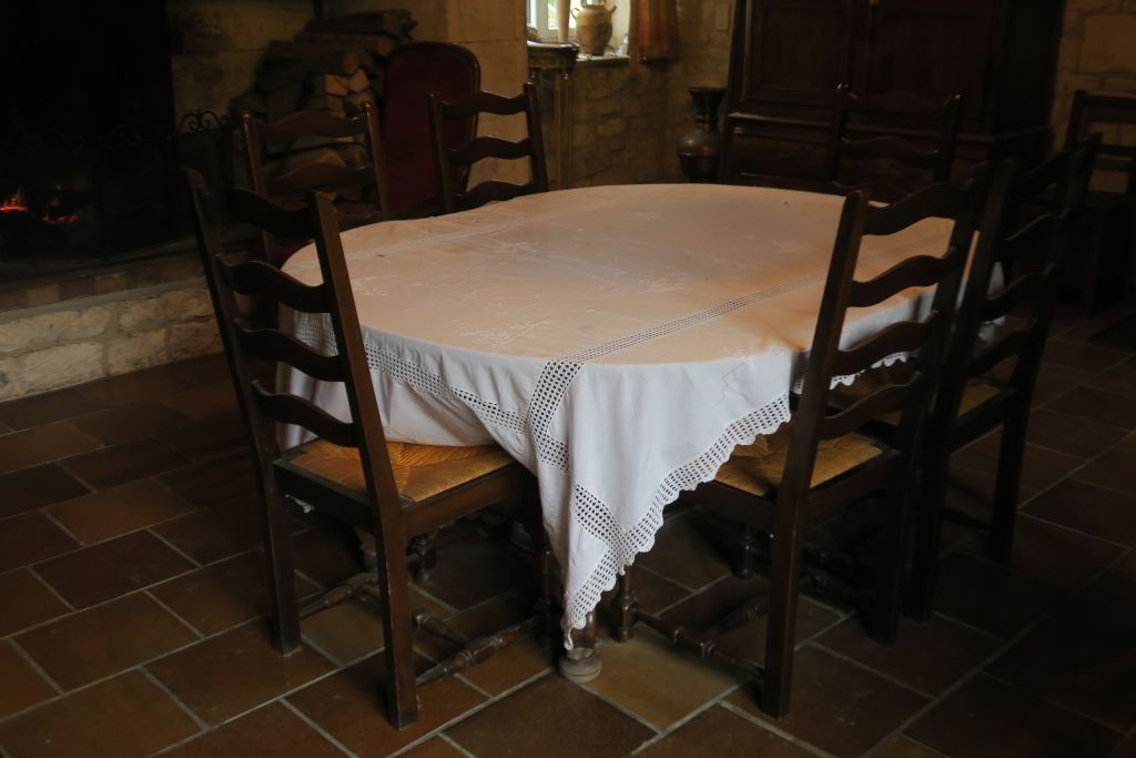 Mobilier de salle à manger en bois naturel mouluré comprenant : une table de salle à manger à allonges (3 Rallonges) et 6 chaises.