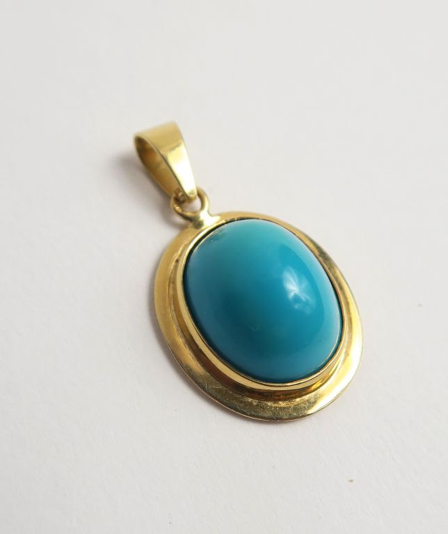 Pendentif en or, orné d'une turquoise en cabochon. Poids tel : 7,2 g