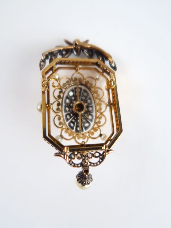 Pendentif Napoléon III en or jaune et or blanc, orné de perles et de roses. Poids tel : 28 g