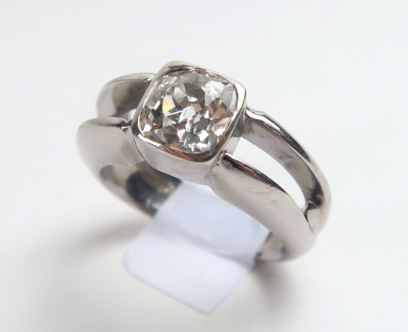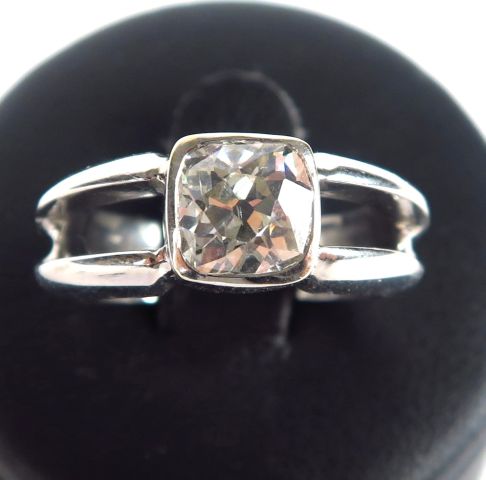 Solitaire en or blanc, orné d'un diamant coussin de 1,15 carats environ