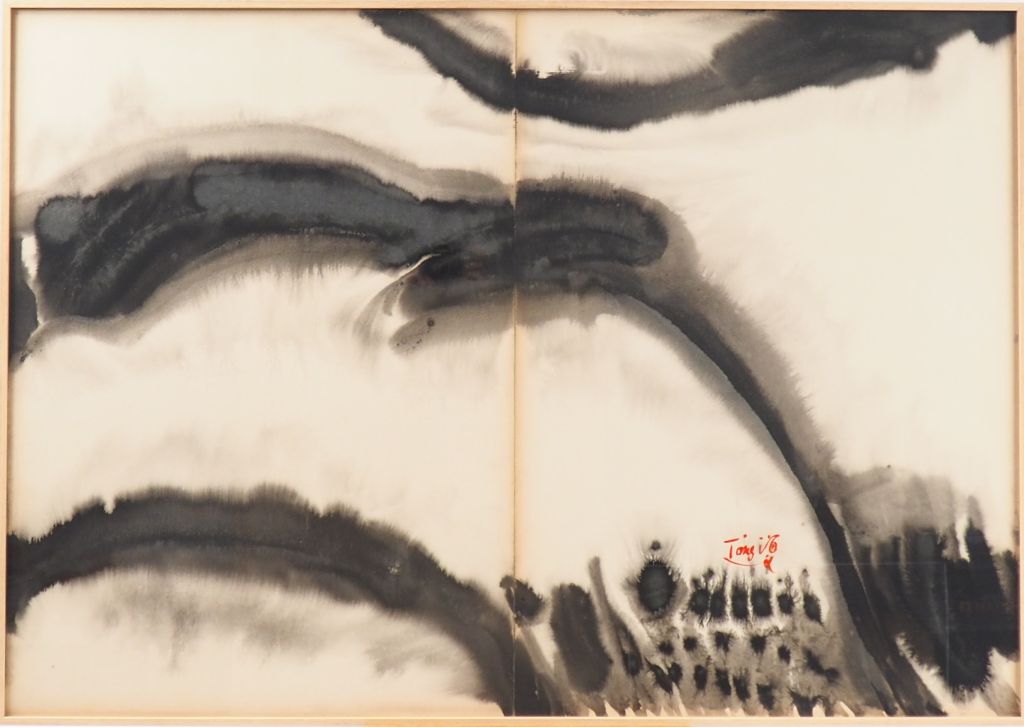 T'ANG AYWEN. "composition abstraite" Encre sur papier signée en bas à droite Dim. 69 x 99 cm