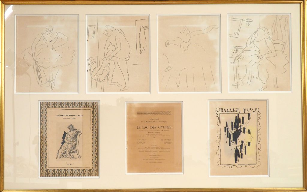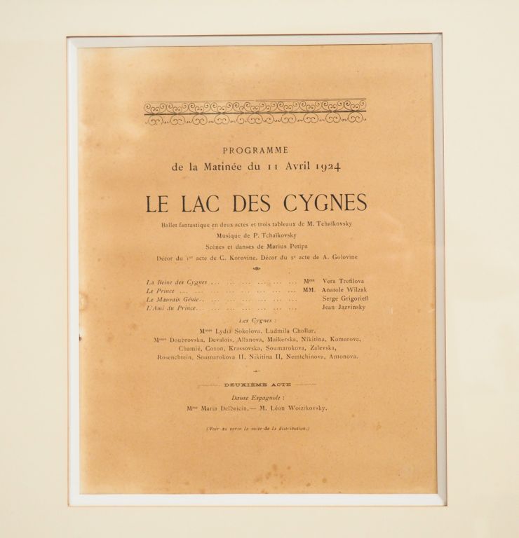 Théatre de Montecarlo 1923. Programme officiel pour le lac des cygnes, 7 feuilles dans un même encadrement