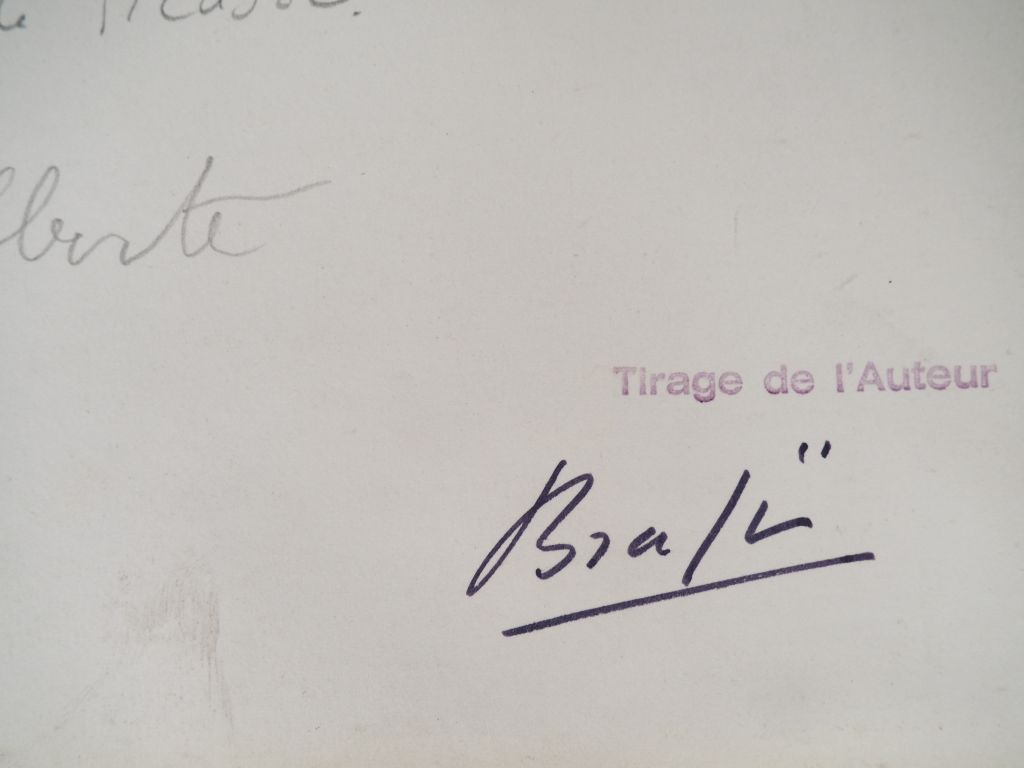 BRASSAÏ (Gyula Halasz, dit) 1899-1984. Moulage de la main de Picasso, ca. 1943. Photographie. Tirage argentique ca. 1965 réalisé par l'auteur monté sous passe-partout, signé et dédicacé "Pour Robert" à l'encre sur le montage, tampons "©Copyright by Brassaï 81, Faubourg St-Jacques Paris 14eme Tél. 707.23.41" et "Tirage de l'auteur", signé et mention "Pic. Sc. 106" à l'encre par l'auteur et annoté "La main de Picasso. Gilberte" par Gilberte Brassaï au crayon au dos. Traces d'humidité sur le montage. Image : 35 x 24,5 cm , montage : 46,5 x 33,5 cm Bibliographie : Daniel Henry Kahnweiler "Les sculptures de Picasso, photographies de Brassaï", éd. du Chêne, 1949, ill. couverture. Brassaï "Conversations avec Picasso", éd. Gallimard, 1964, p.166. Brassaï "Les artistes de ma vie", éd. Denoël, 1982, p.177. "Picasso vu par Brassaï", éd. RMN, Paris, 1987, p.142.