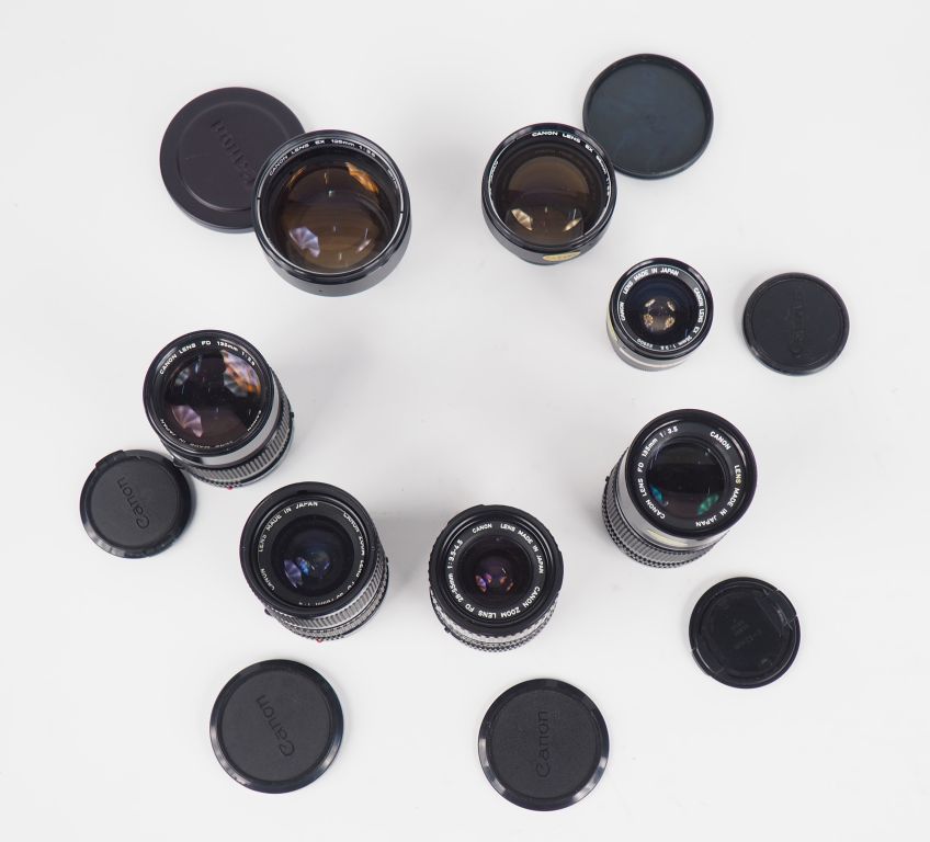 CANON. Lot de sept objectifs : - EX 1:3.5/95 n°26292 - FD 1:2.8/135 n°36276 - EX 1:3.5/125 n°35742 - FD 1:4/35-70 n°294524 - FD 1:3.5/135 n°267422 - FD 1:3.5-4.5/28-55 n°63854 - EX 1:3.5/35 n°22800