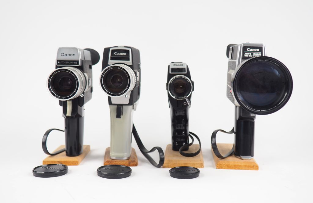 CANON. Lot de six caméras : - ZOOM 250 SUPER 8 - AUTO ZOOM 518 SUPER 8 - AUTO ZOOM 518 SV SUPER 8 - SINGLE 8 518 - AUTO ZOOM 318M x 2 dont une avec sa boite