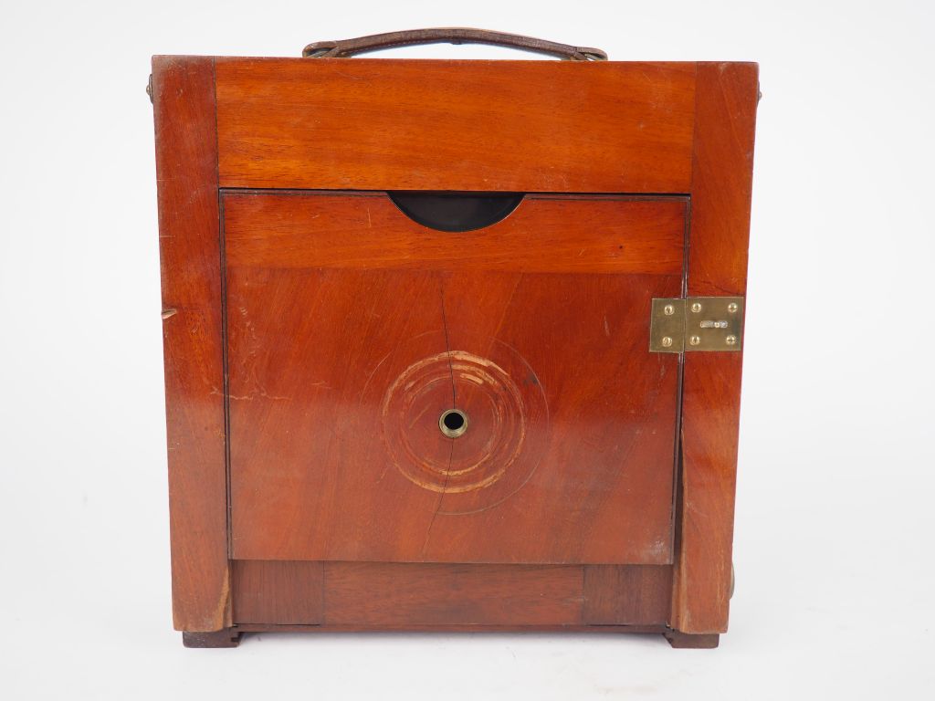 Chambre photographique de voyage 13 x 18 cm en acajou verni avec obturateur THORNTON PICKARD et objectif C.P. GOERZ DOPP-ANASTIGMAT Série III DAGOR 1:6.8/180. (Petits accidents)