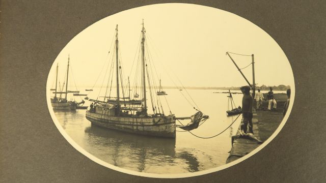 CONAKRY, la perle de l'A.O.F. Rare album de 87 photographies en très bel état dans sa reliure d'origine de style Art Déco en tissu.