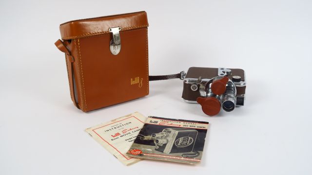 Dejur :Caméra 8mm tourelle à trois objectifs Ambassy 1,9/12,5- 1,9/6,5 -3,5/25, gainage marron, notice, étui Cond : Bel état