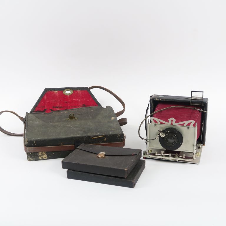 ERNEMANN DETECTIV Folding a soufflet rouge avec objectif APLANAT 1 : 6.8 n°1 / n°117286 avec plaques et housse d'origine