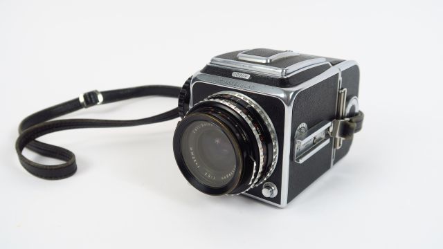 Hasselblad -1978- 1000F N°CI , objectif Distagon 5,6/60 N° 1455228 filtre,dos CH N° 13791, courroie, l'obturateur fonctionne Cond : Bel état