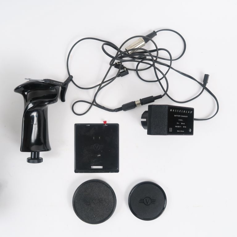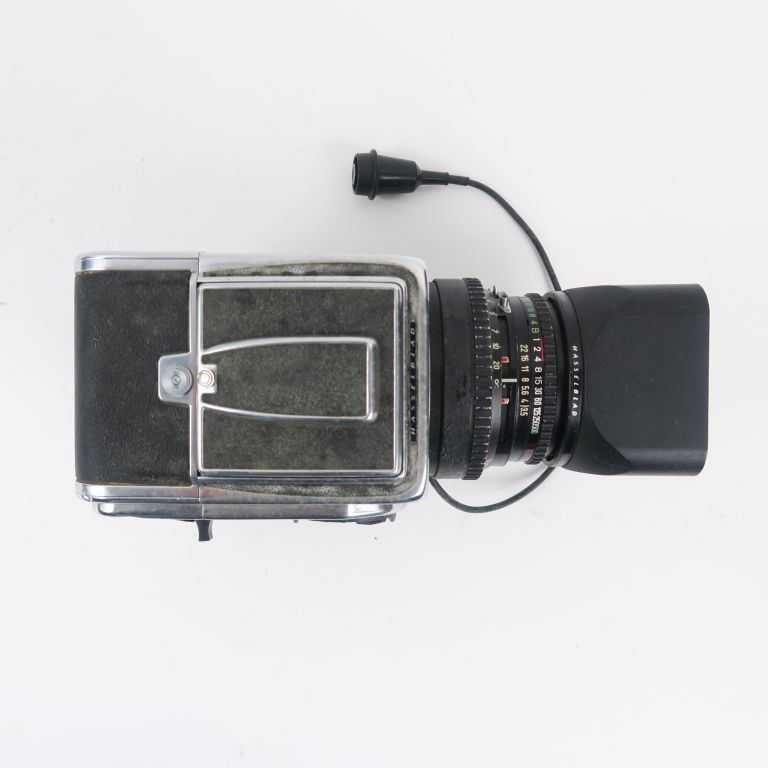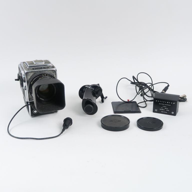 HASSELBLAD 500EL/M n°RD 1318565 et magasin n°US 174165. Objectif PLANAR 1 : 3.5 f=100 mm n°6361765 avec paresoleil, on y joint des accessoires.