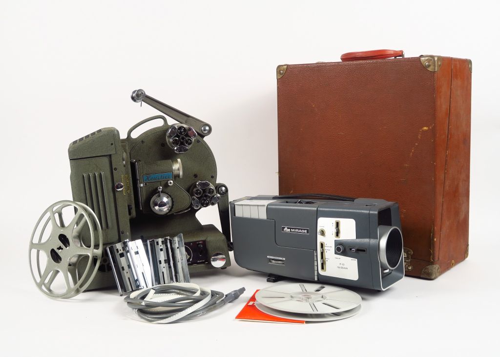 HEURTIER. Projecteur tri films avec ses trois couloirs, sa malllette. 110 volts. On y joint un projecteur IFBA Mirage Super 8 C-200S. Bobine, notice et boîte. Colleuse Cameralex avec sa boîte.