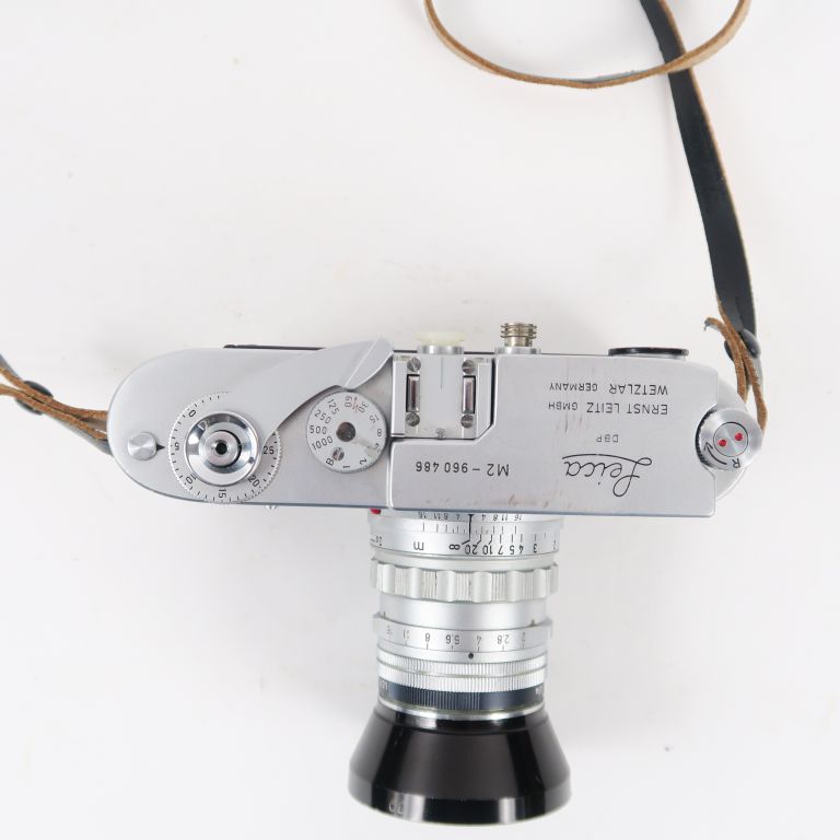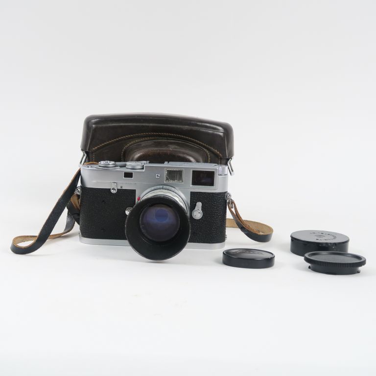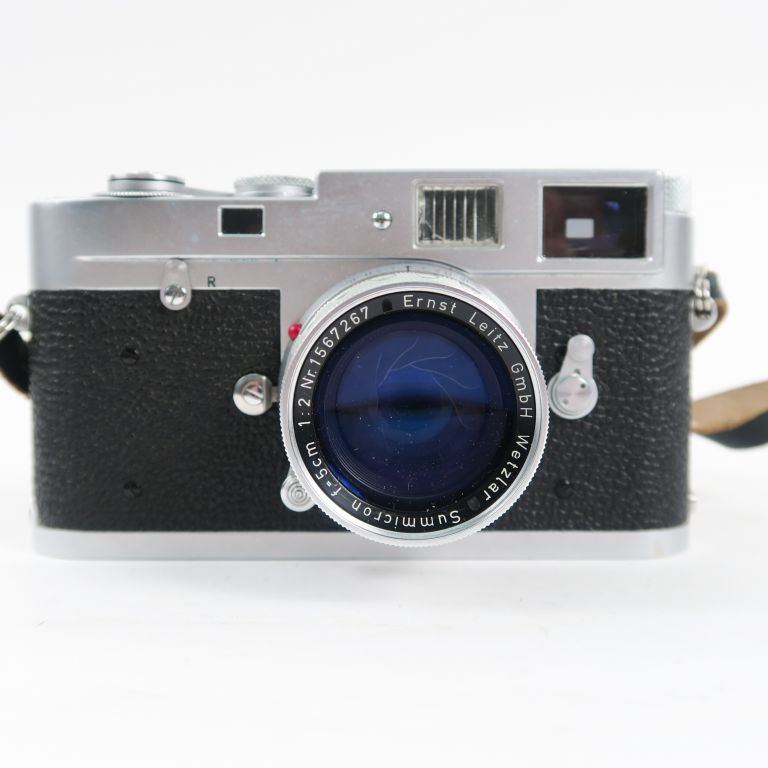 LEICA M2 n°960486 avec objectif SUMMICRON 1 : 2 f=5cm n°1567267, paresoleil, housse et mode d'emploi.