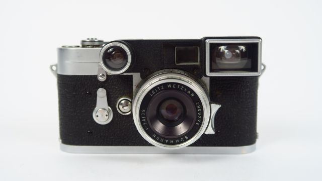 Leitz :M3-1955- N°731856 ,objectif Summaron 2,8/35 N°2006772 avec correcteur de visée, manque de gainage au dos ( humidité) Cond : bon état