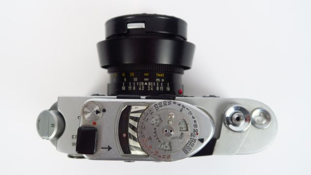 Leitz : M4-1969 -N° 1251276 noir objectif Summilux 1,4/50 N°2347198 parasoleil, Leicameter MR N°04700 sac TP Cond : Bel état