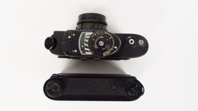 Leitz : M4-2 -1978- N° 1563876 objectif Summicron 2/35 N°2774938 Leicameter N°47767 noir, Winder N° 14227, manque de gainage Cond : bon état