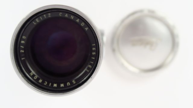 Leitz:Summicron 2/90 M N°1651163 Canada chromé bouchons Cond : Bel état