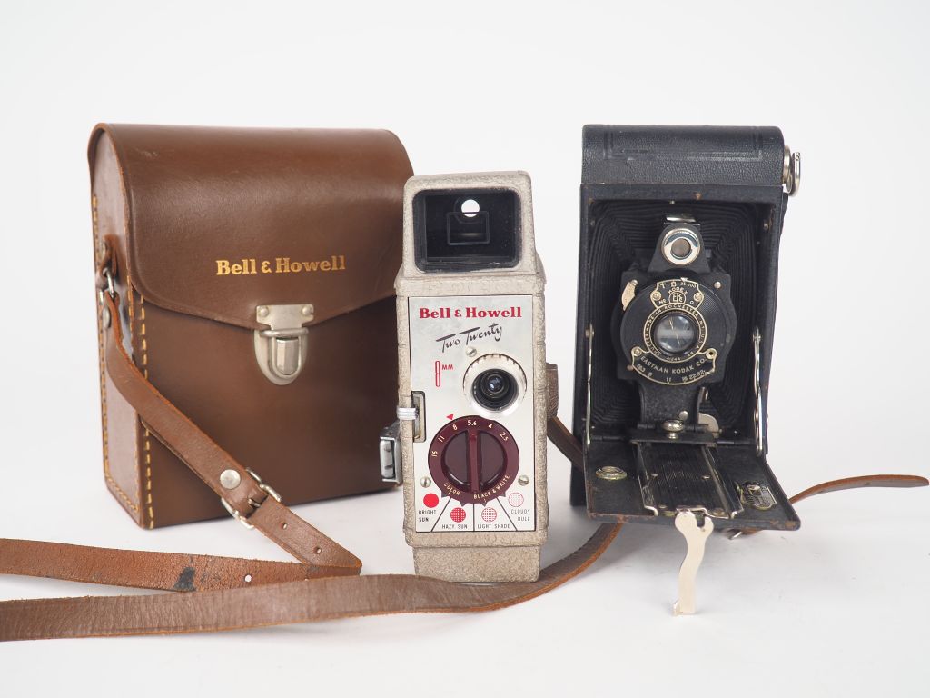 Lot comprenant : BELL HOWELL caméra two twenty 8mm avec sa housse KODAK folding