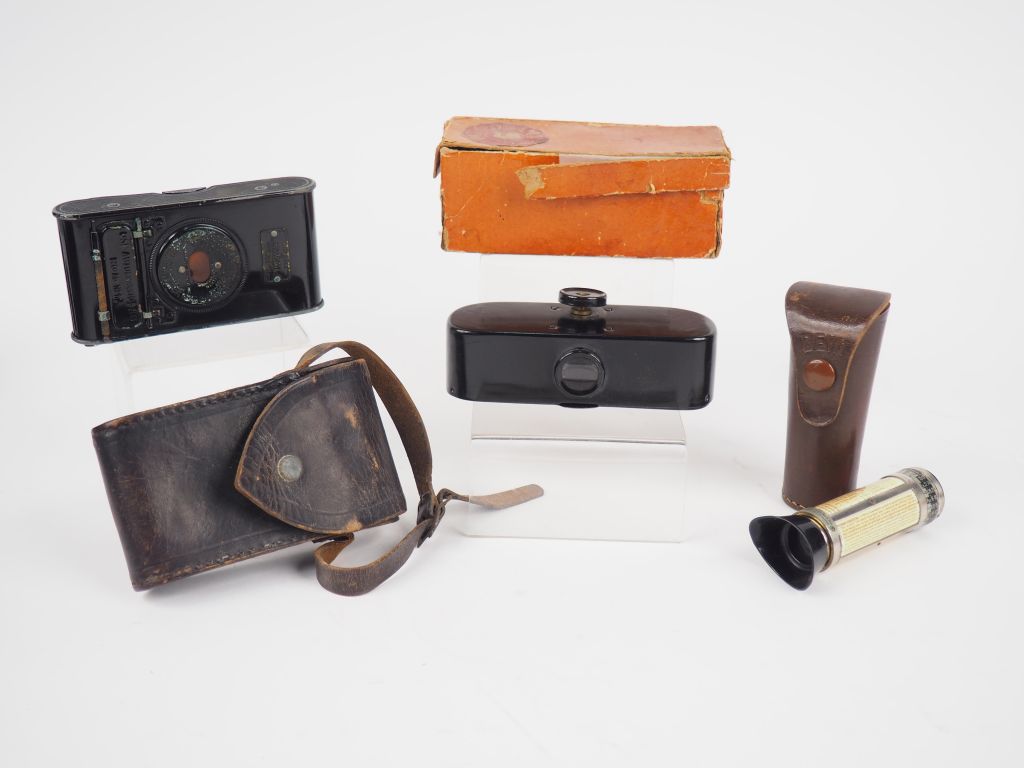 Lot comprenant : - PATHEORAMA visioneuse dans sa boite (mauvais état) - KODAK Folding dans son étui (état d'usage) - BEWI Posemètre dans son étui