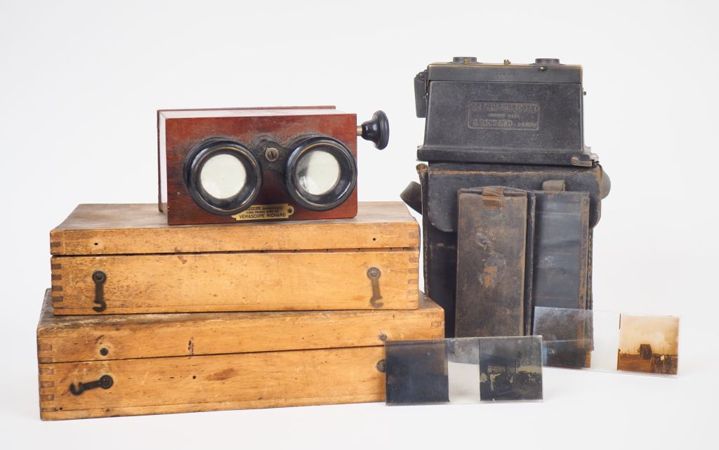 Lot comprenant : - VERASCOPE RICHARD et deux lots de plaques photograpiques on y joint un GLYPHOSCOPE RICHARD dans son étui avec ses dos